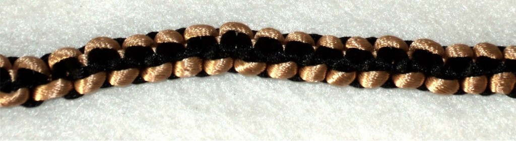 Dvojfarebný náramok, splietaný zo saténových šnúrok